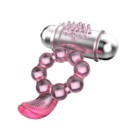 Inel pentru penis prevazut cu striatii ce stimuleaza clitorisul si 7 functii diferite de vibrare.