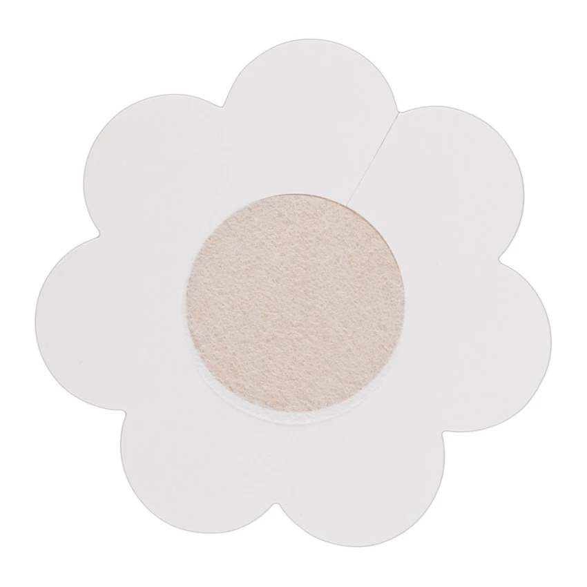 Accesorii adezive pentru sfarcuri, cu forma eleganta de floare, confectionate din material opac, potrivite pentru a fi purtate pe sub tesaturile fine, transparente.