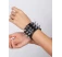 Aplicatiile ascutite argintii sunt dispuse decorativ pe intreaga suprafata, sub forma de ansamblu simetric iar nuanta de argintiu ofera un aspect glamorous intregului articol. Structura in sine a bratarii este una fina, simtindu-se foarte placut la contactul cu pielea.