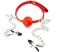 Calus rosu prevazut cu bila perforata din silicon si cleme pentru sfarcuri. Clemele sunt unite de calus prin doua lantisoare metalice. Cureaua dispune de sistem de prindere pe baza de catarama metalica, pentru o ajustare facila.