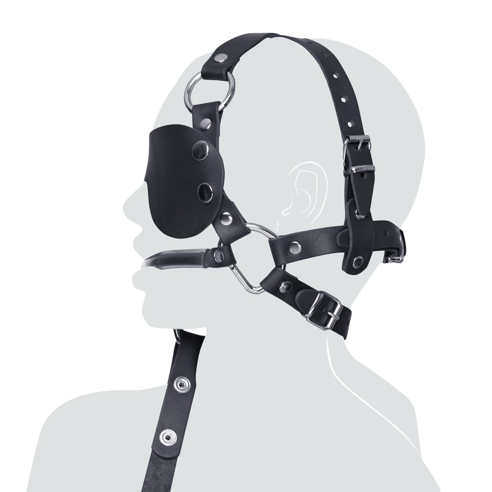 Accesoriu pentru cap ideal in jocurile BDSM, realizat din piele. Accesoriul este format din curele reglabile cu sistem de prindere pe baza de catarame metalice, masca pentru ochi si calus sub forma de tup transparent. De asemenea, dispune de lesa.