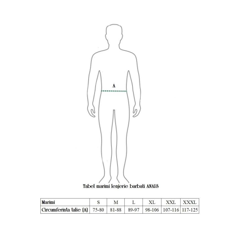 Lenjerie intima pentru barbati confectionata din material elastic, placut la atingere. Slipul este un model clasic, prevazut cu bata elastica pe talie, imprimata cu logo-ul Anais. Daca partea frontala este opaca, la spate materialul este transparent, pentru un plus de senzualitate.