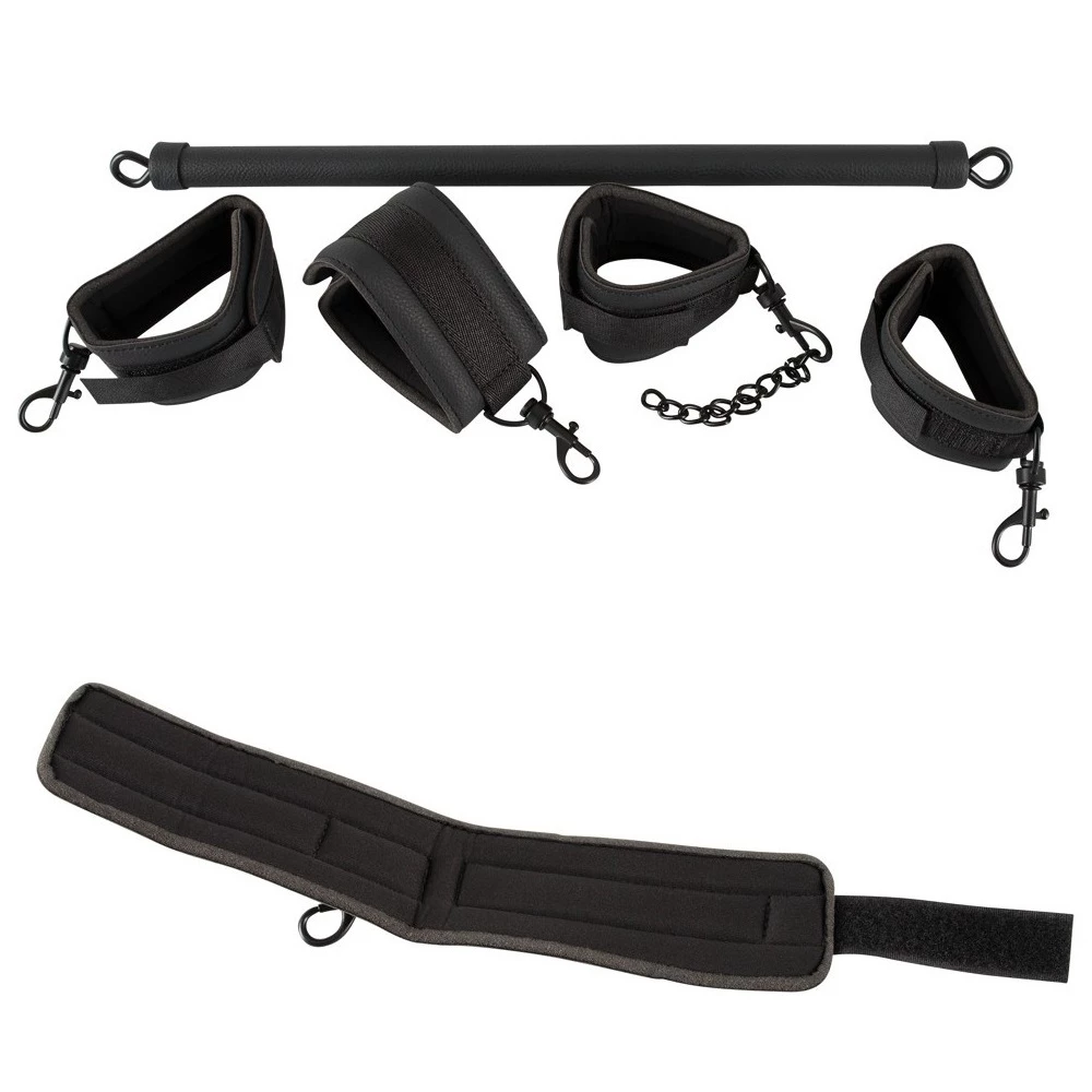Fetish Spreader este un accesoriu cu design deosebit si captivant, special creat pentru cuplurile care doresc sa incerce pozitii noi in cadrul jocurilor intime de tip BDSM. Este compus practic dintr-un accesoriu dur, prevazut la cele 2 extremitati cu ansambluri de catuse pentru maini, respectiv catuse pentru glezne.