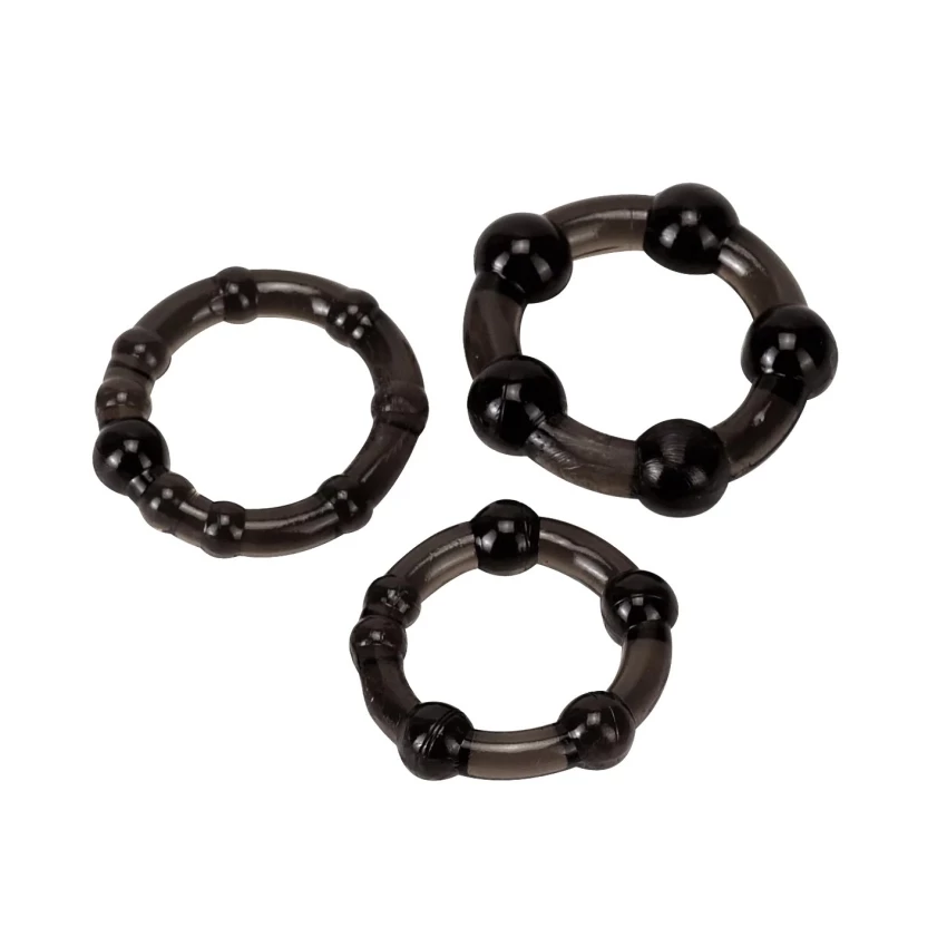 Set format din 3 inele pentru penis de diferite marimi. Inelele sunt prevazute cu diverse formatiuni in forma de margele, menite sa aduca un plus de stimulare.