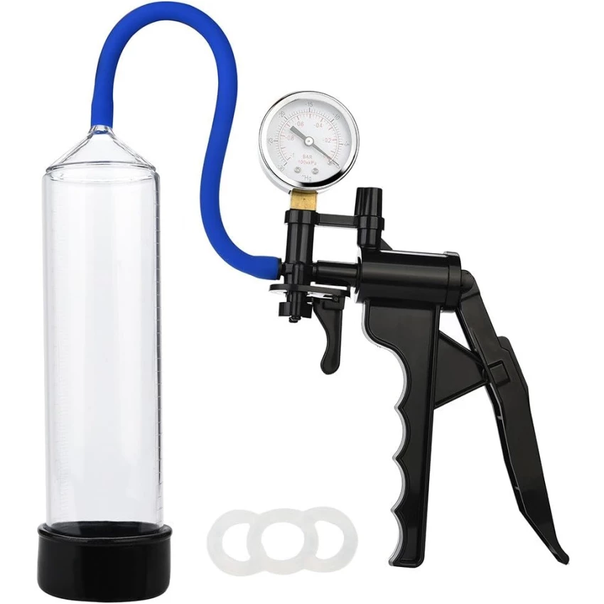 Pompa vid pentru marirea penisului in lungime si in grosime, cu sistem de actionare manual si cu manometru pentru a verifica cu usurinta presiunea din interiorul cilindrului.