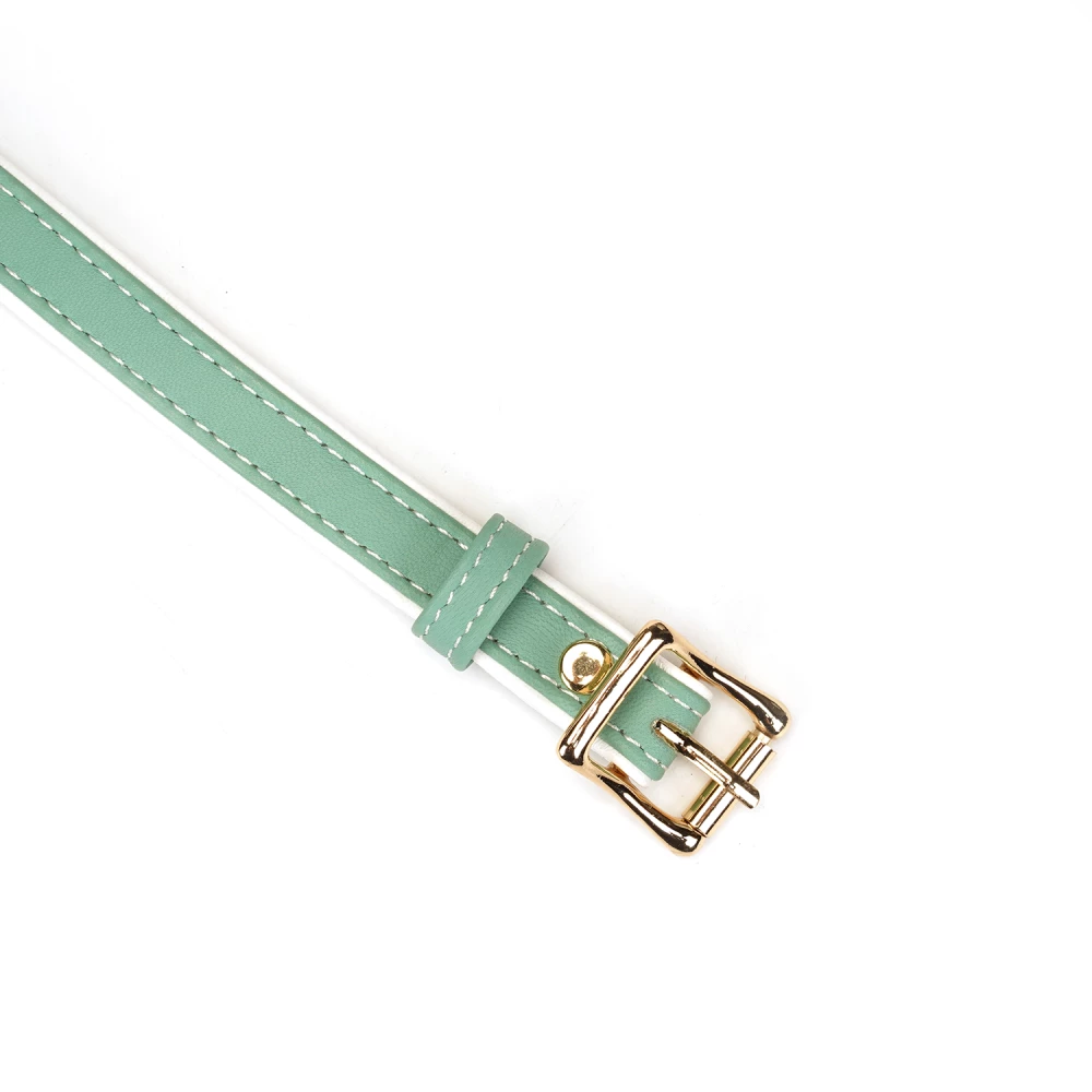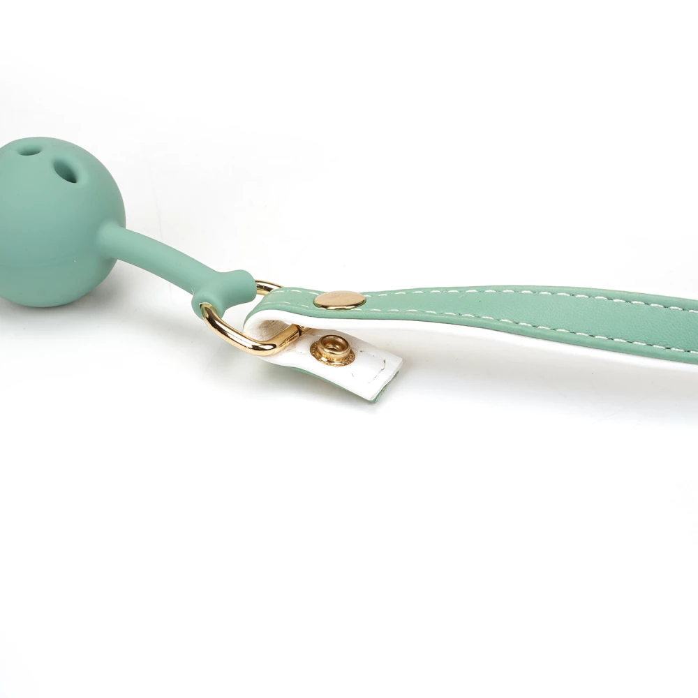 Calus cu sistem de prindere si reglare pe baza de catarama metalica. Bila calusului este perforata. De asemenea, este atasata de curea cu ajutorul unor elemente aurii, metalice.