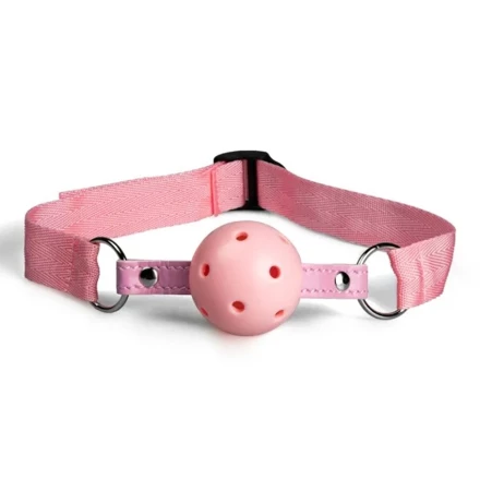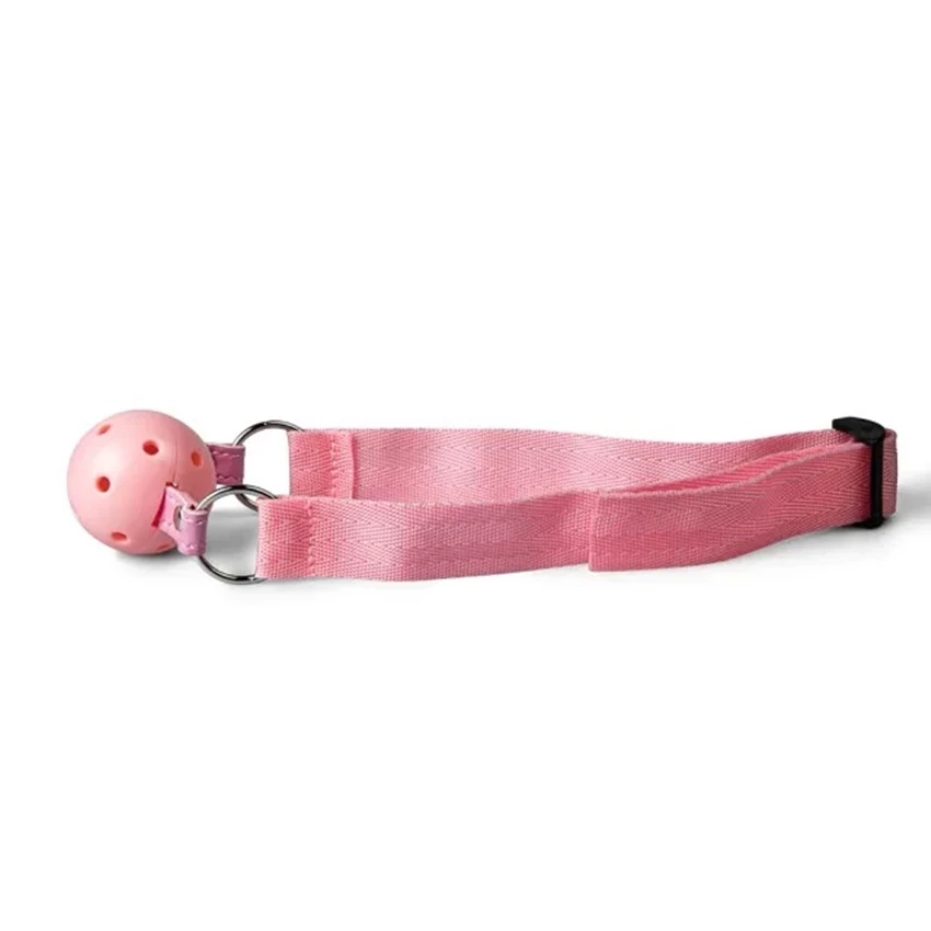 Calus roz prevazut cu o curea ajustabila si bila perforata ce asigura o aerisire eficienta. Cureaua este atasata de doua zale metalice. Ideal pentru jocurile erotice de dominare si supunere.