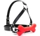 Calus de culoare rosie, in forma de os, fabricat din silicon, prevazut cu un sistem de curele cu catarame si inele de prindere.