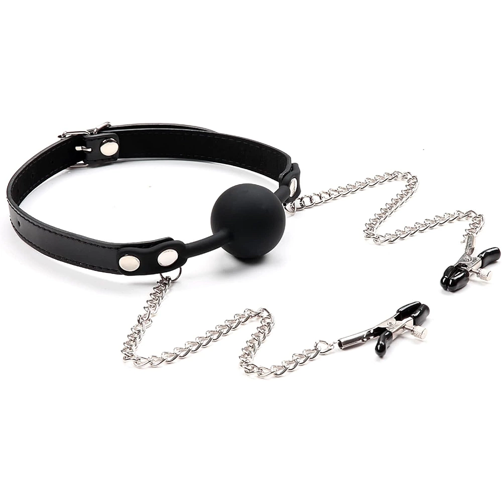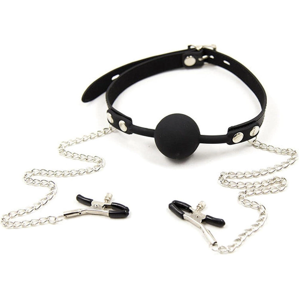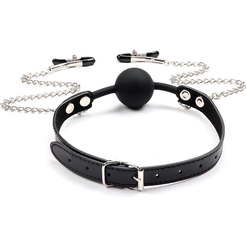 Calus negru prevazut cu bila plina din silicon si cleme pentru stimularea sfarcurilor. Clemele sunt unite de calus prin doua lantisoare metalice. Cureaua dispune de sistem de prindere pe baza de catarama metalica, pentru o ajustare facila.