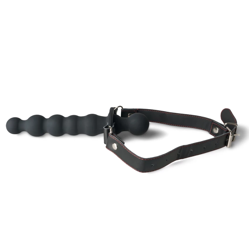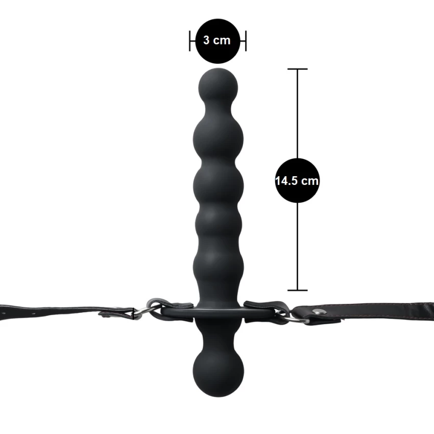 Calus unisex cu design captivant, compus din curea reglabila si dildo dublu cu aspect de sirag de bile anale. Cureaua dispune de inele care alaturi de capsele argintii fixeaza ansamblul cu dildo intr-o maniera eficienta si sigura.