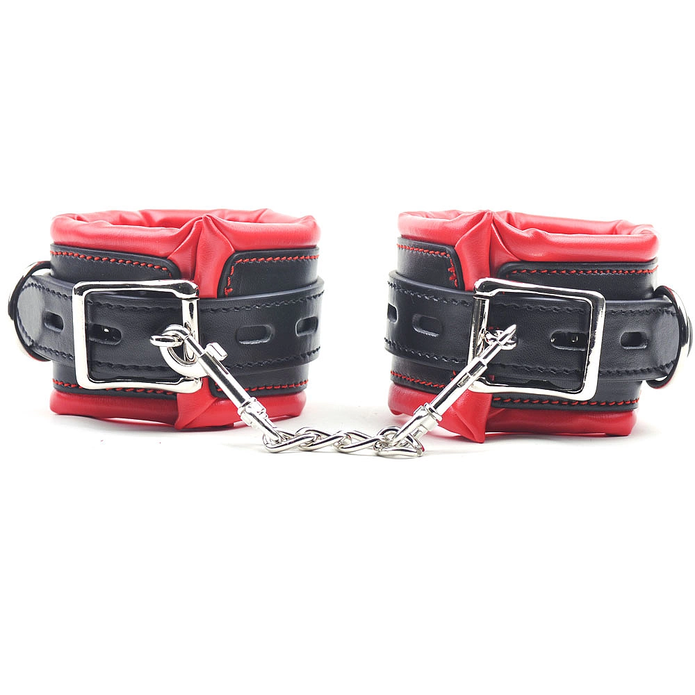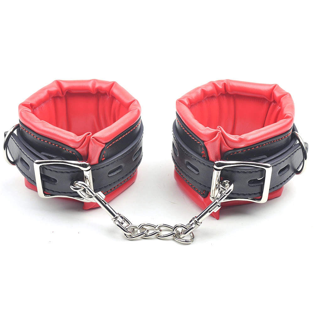Catuse pentru jocurile BDSM, confectionate din piele ecologica in combinatie de culori rosu si negru.