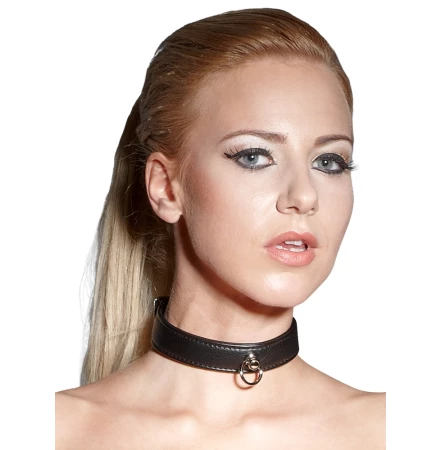 Zgarda prevazuta frontal cu inel metalic, conceputa pentru a fi utilizata in jocurile de tip BDSM sau pentru a accentua un stil vestimentar cu accente punk-gotic.