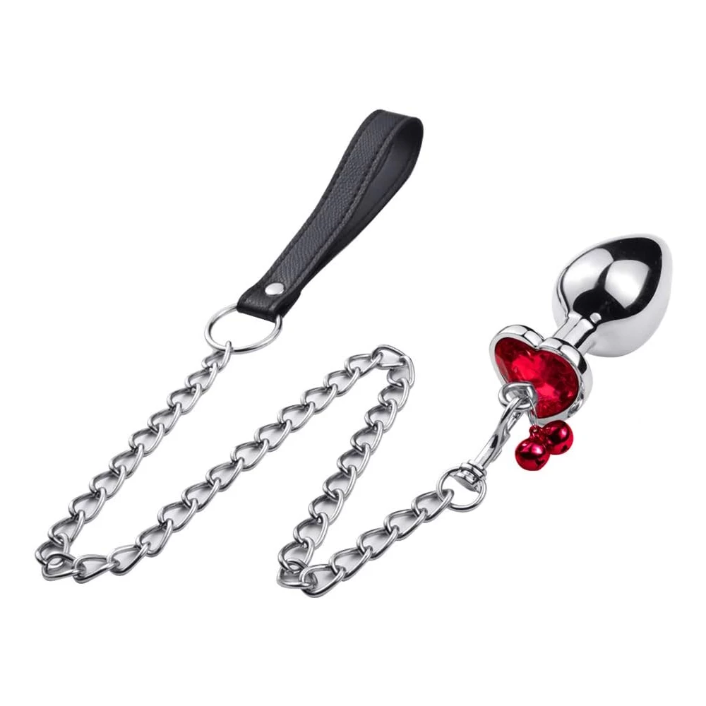 Dildo anal metalic, cu forma conica pentru o inserare facila si confortabila. Baza este in forma de inima si este decorata cu o piatra rosie. De asemenea, este accesorizat cu doua bilute si este prevazut cu o lesa detasabila.