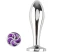 Dildo anal metalic prevazut cu design ce ofera o stimulare intensa. Dispune de maner practic, decorat cu pietricele mov, care sprijina utilizarea dildo-ului in conditii de siguranta. De asemenea, baza este detasabila.