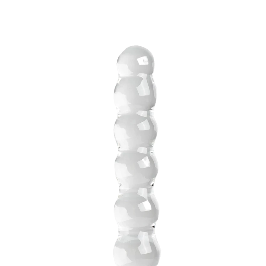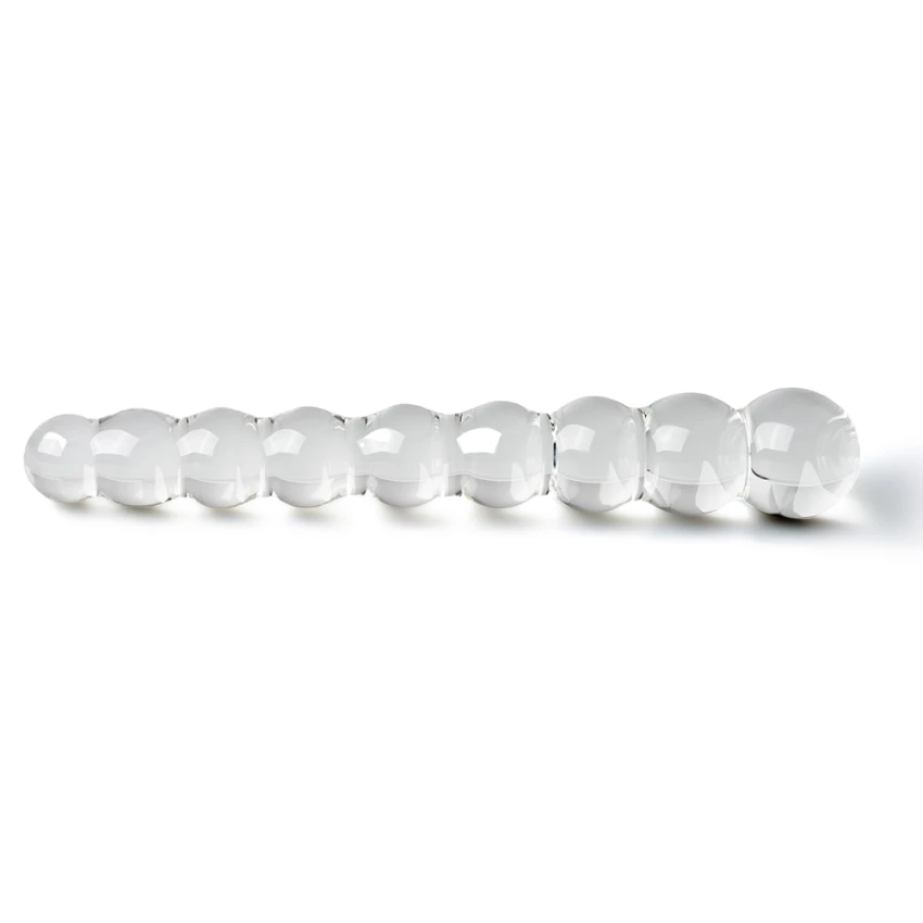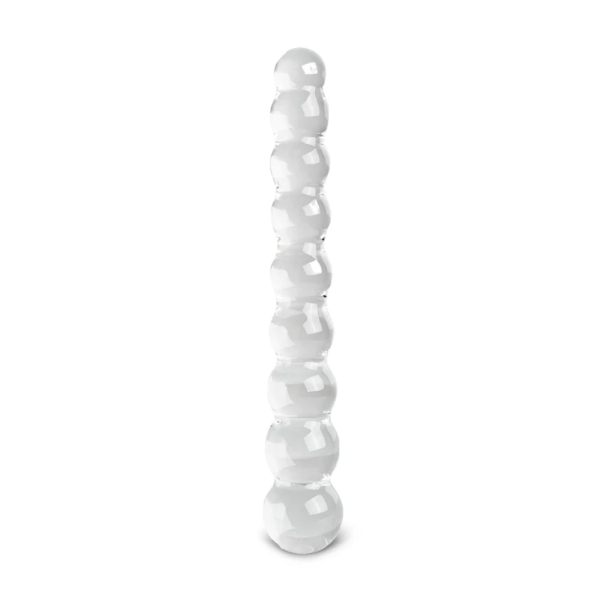 Dildo din sticla cu forma care imita un sirag de bile suprapuse cu dimensiuni diferite care asigura o stimulare intensa, garduala.