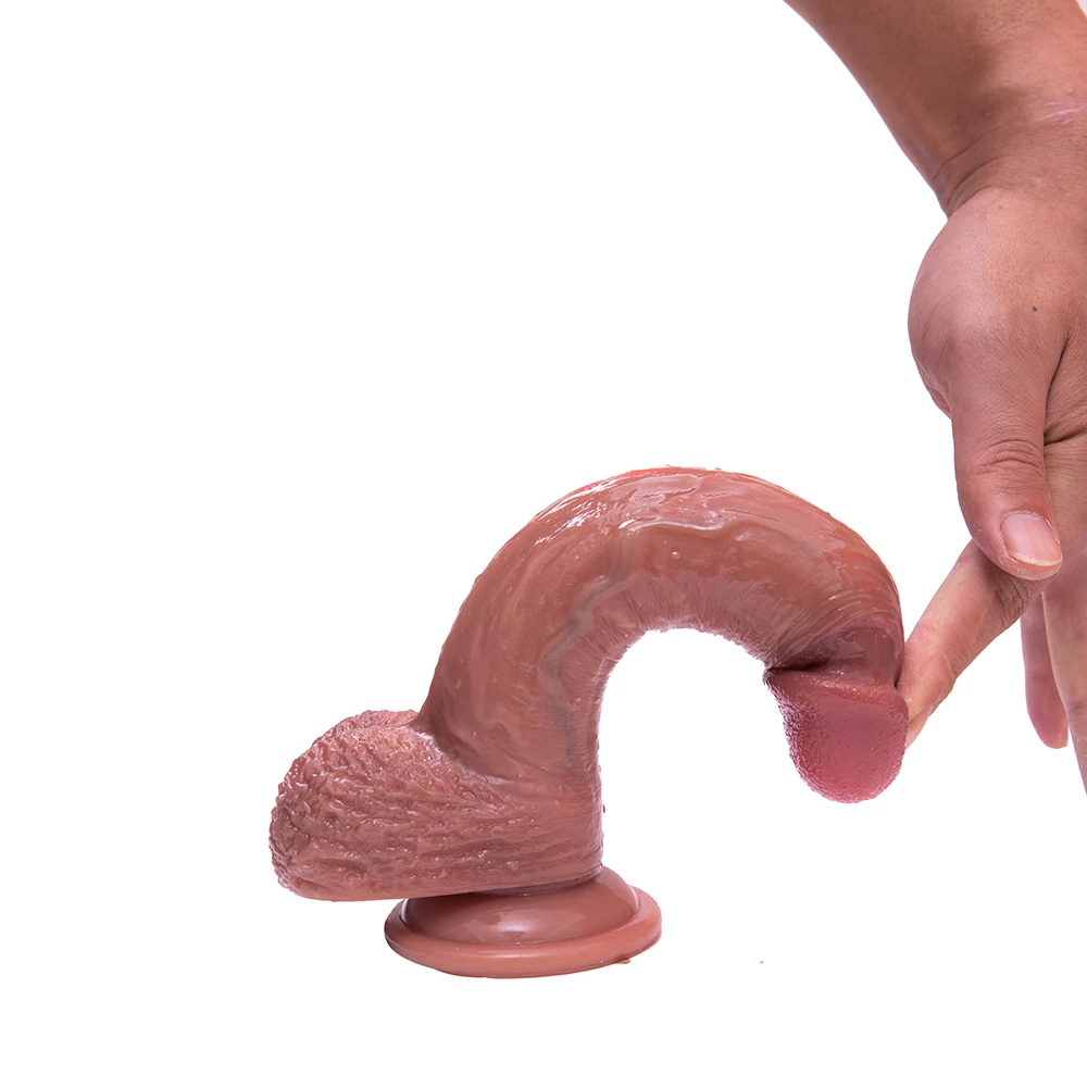 Dildo care imita perfect un penis aflat in erectie, fabricat din silicon lichid, este prevazut cu gland si vene bine conturate, dar si cu testicule.