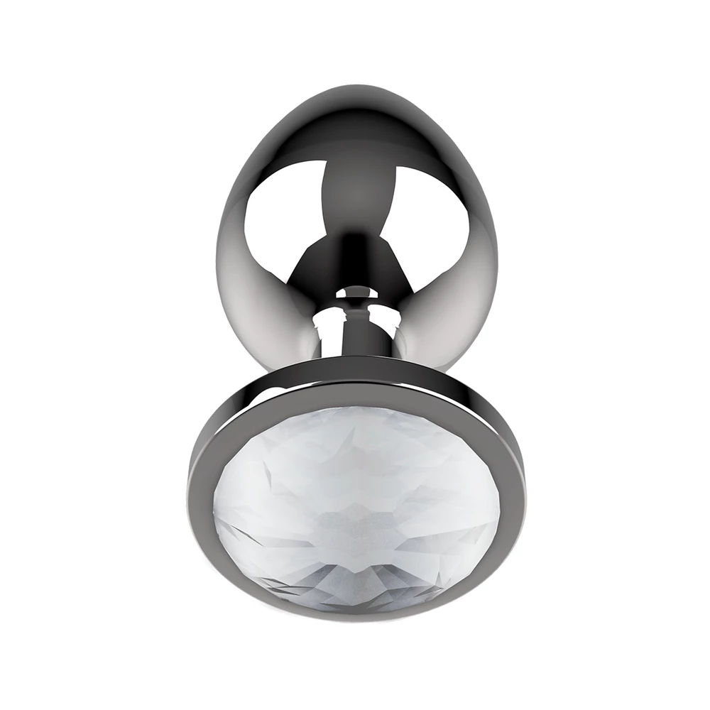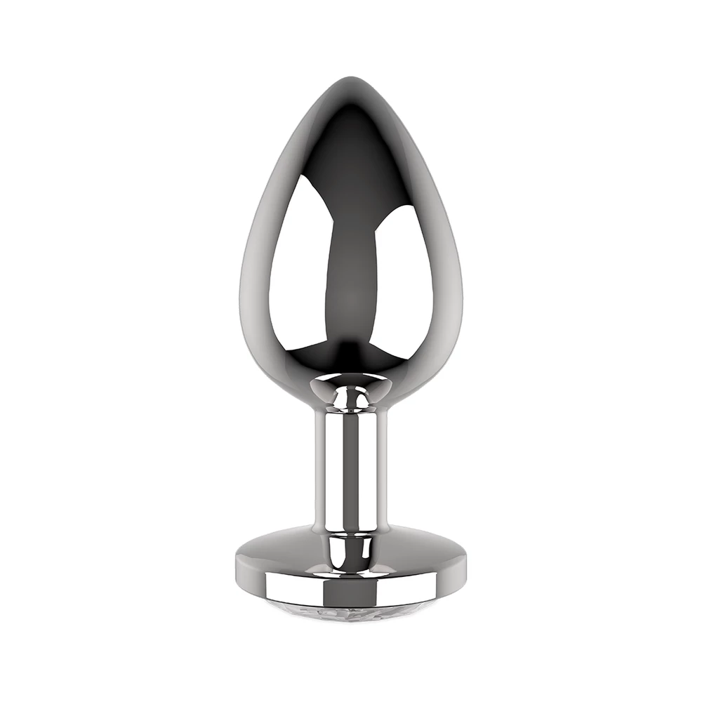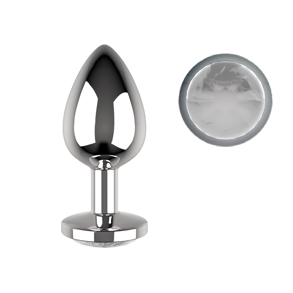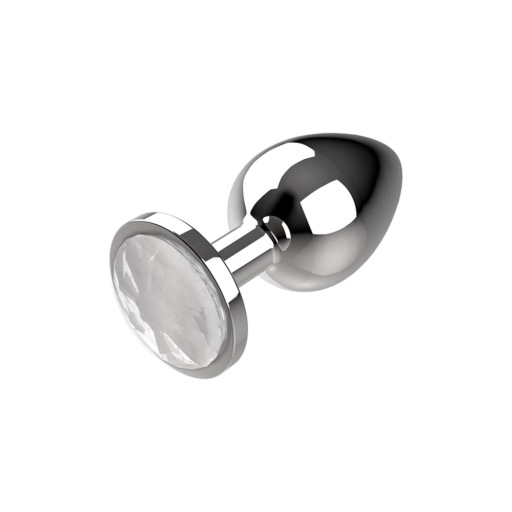 Dildo anal din otel inoxidabil, cu varful rotunjit si baza prevazuta cu piatra decorativa alba.