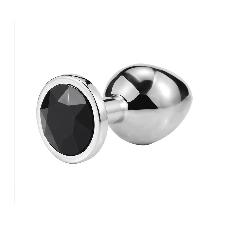 Dildo anal din otel inoxidabil cu forma conica, pentru o inserare facila. Baza circulara este decorata cu o piatra eleganta, neagra, si are o greutate de 450g.