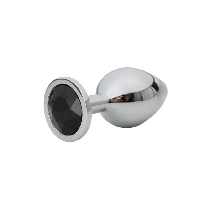 Dildo anal metalic, prevazut cu design conic pentru o inserare facila. Dispune de maner cu baza circulara. Baza este decorata cu o piatra in forma de diamant negru.