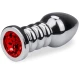 Dildo anal cu varf conic pentru o inserare facila. Are suprafata neteda si este prevazut cu maner pentru o utilizare usoara, lipsita de riscuri. Baza este decorata cu o piatra rosie. Are o greutate de 121g.