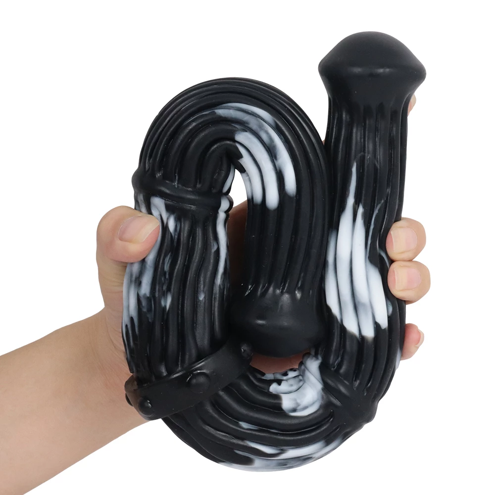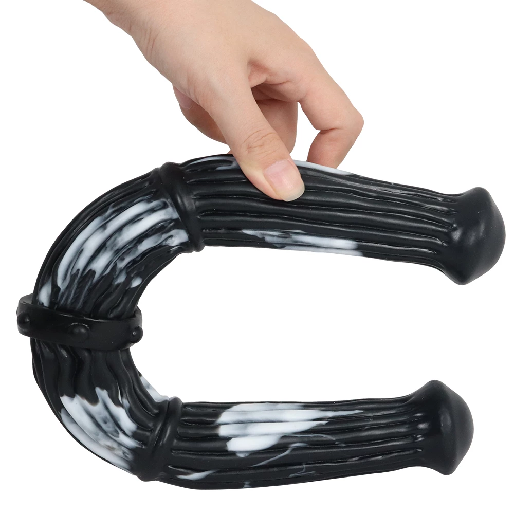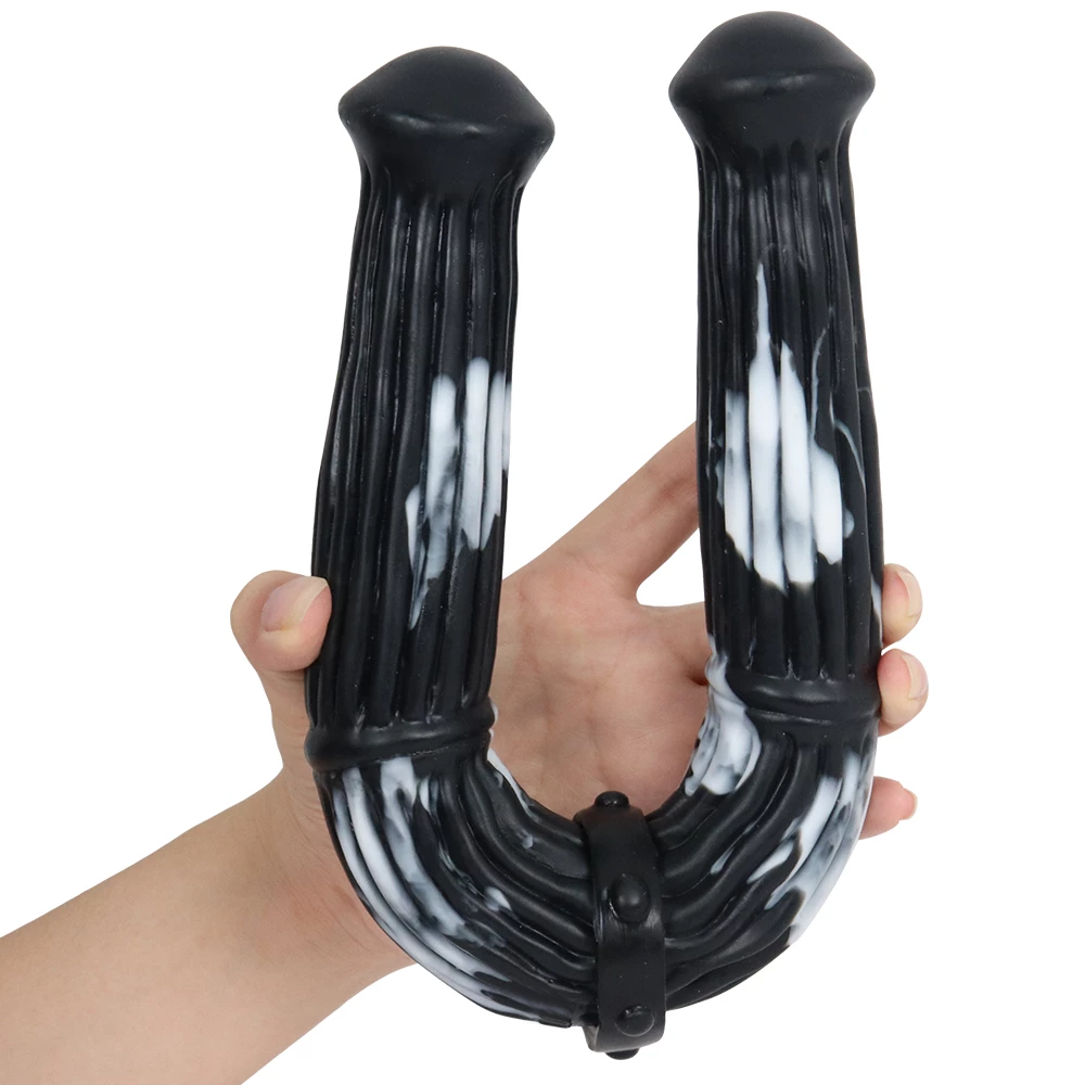 Dildo dublu cu design fantasy confectionat din silicon lichid. Extrem de flexibil, intr-o combinatie unica de negru si alb, dildo-ul completeaza perfect colectia ta de jucarii erotice.