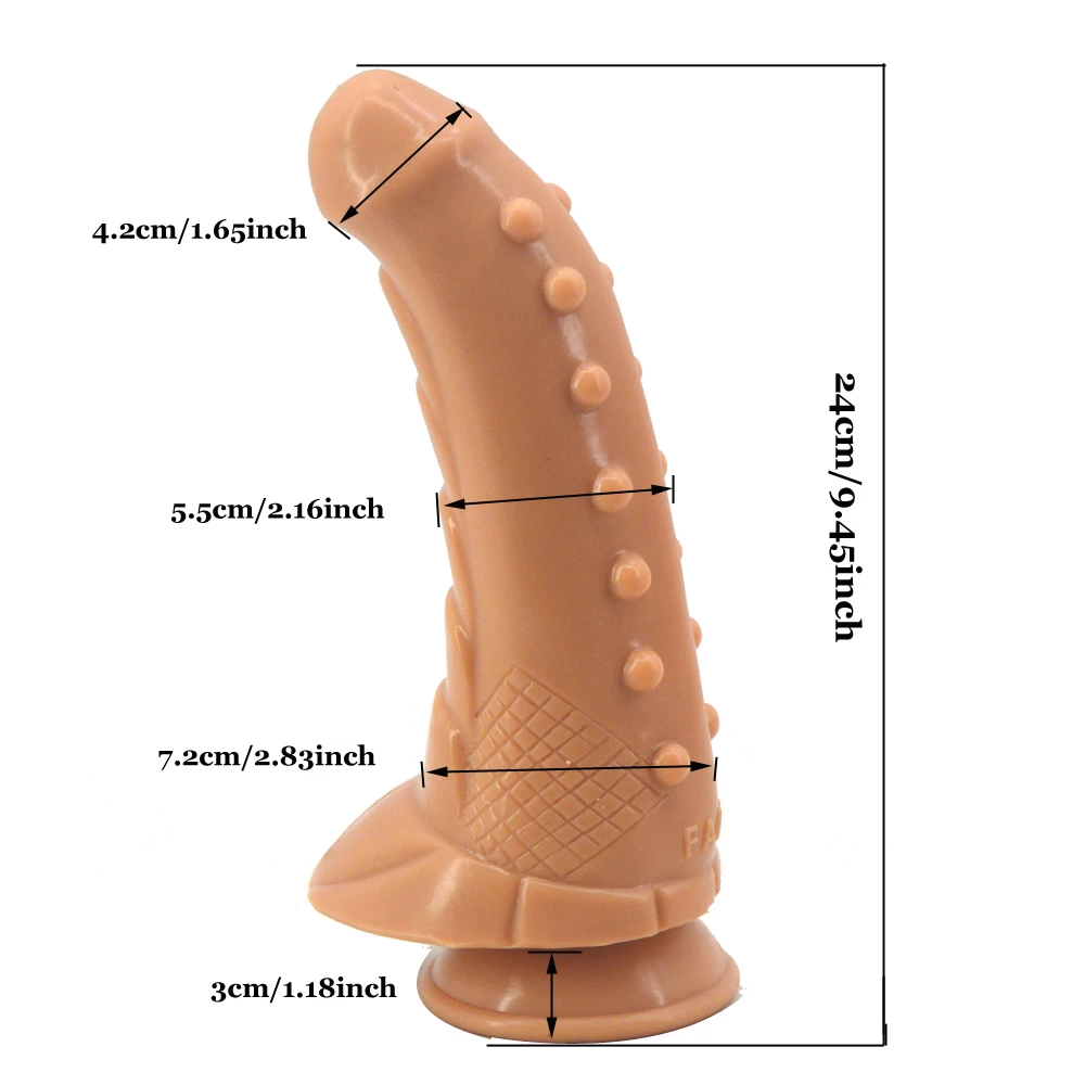 Dildo cu aspect fantasy confectionat din silicon, cu suprafata prevazuta cu striatii si puncte in relief pentru o stimulare intensa. Baza este prevazuta cu o cupa de suctiune ce fixeaza produsul pe suprafetele plane, pentru libertate deplina in timpul utilizarii.