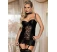 Babydoll din material lucios si insertii de dantela si tulle fin, cu sistem de prindere dupa gat pe baza de fermoar. Decolteul amplu dispune de cupe intarite si captusite si este sustinut de bretele ajustabile. Model cu decupaj amplu la spate si jartiere reglabile, include un slip tanga asortat.