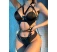 Body cu aspect bondage, realizat din cureluse inguste din vinil. Model fara cupe, decupat in zona intima. Curelusele sunt unite intre ele cu ajutorul unor elemente metalice in forma de capse si inele. Se prinde dupa gat si la spate. Dispune de sistem de reglare pe baza de catarame, pentru a se potrivi perfect pe conturul corpului.