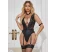 Body sexy fabricat din material dantelat in partea superioara si material cu aspect umed in partea inferioara. Model fara maneci, cu decolteu amplu in V, decupat in zona feselor.