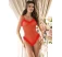 Body cu design senzual, realizat din material rosu transparent. Dispune de bretele inguste, reglabile, si finisaje din blanita artificiala.