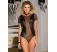 Body fabricat din material cu aspect umed si tulle fin, prevazut cu maneci scurte si guler la baza gatului. Liniile orizontale ale tulle-ului creeaza impresia de material plisat.