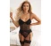 Body cu design atractiv confectionat din material elastic tip plasa si insertii de material cu aspect dantelat, prevazut cu decolteu adanc, decupaj pe spate si bretele reglabile. Dispune de jartiere detasabile si reglabile, pentru a completa lookul sexy.
