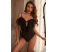 Body negru din material transparent, prevazut cu bretele inguste, reglabile. Este accesorizat cu un volanas care evidentiaza zona bustului.
