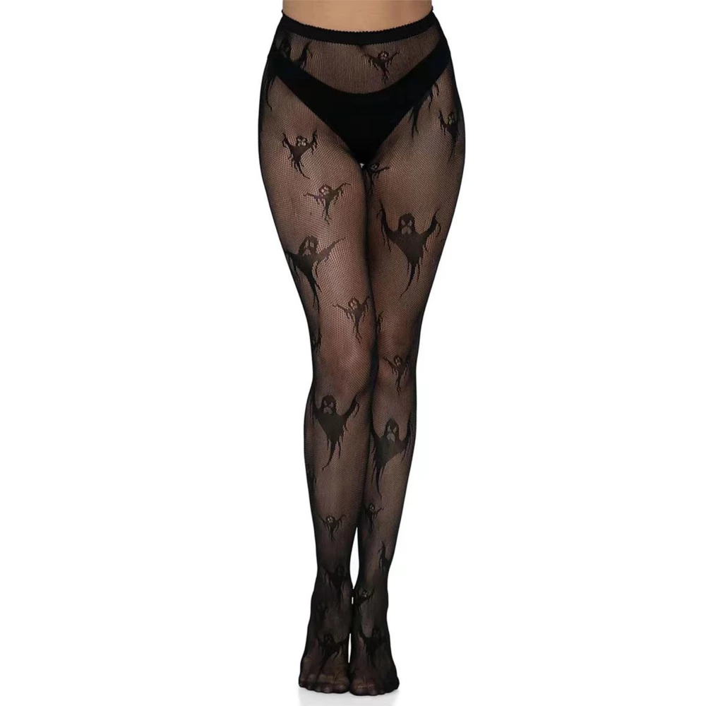 Dresuri negre din material elastic tip plasa cu ochiuri mici si model in forma de stafii. Modelul se muleaza frumos pe conturul piciorului.