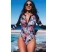 Costum de baie confectionat din material placut la atingere, cu uscare rapida. Costumul cu imprimeu vegetal pe partea frontala este prevazut cu fermoar in fata si maneci lungi.