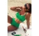 Costum de baie din doua piese, realizat din material confortabil cu textura striata. Bustiera dispune de bretele inguste, reglabile. Slipul este un model clasic cu talie inalta.