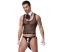 Topul este realizat din material tip plasa care evidentiaza forma corpului. Gulerul alb are sistem de prindre frontal si este accesorizat cu o fundita neagra. Manusile albe sunt un model clasic, iar slipul dispune de un design incitant.