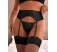 Portjartier cu design clasic, realizat din material negru opac. Dispune de sistem de prindere la spate si jartiere reglabile. Este decorat cu elemente metalice aurii care adauga o nota de glamour tinutei. Vine la pachet cu slip tanga asortat.