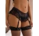 Slip cu design care imita un set format din portjartier si slip. Model realizat din material cu aspect de dantela, decupat la spate. Dispune de volanas jucaus si jartiere reglabile.