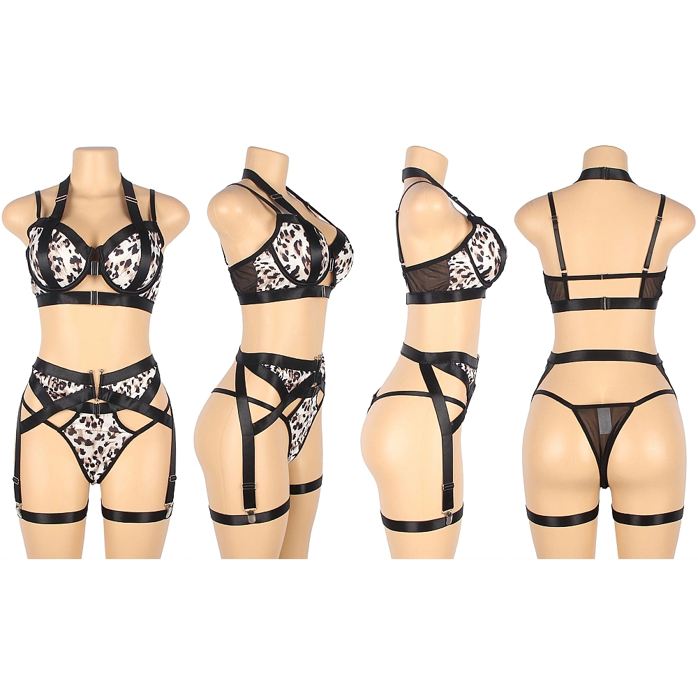 Set de lenjerie erotica cu design incitant fabricat din material animal print care adauga o nota de indrazneala. Este format din sutien si slip.