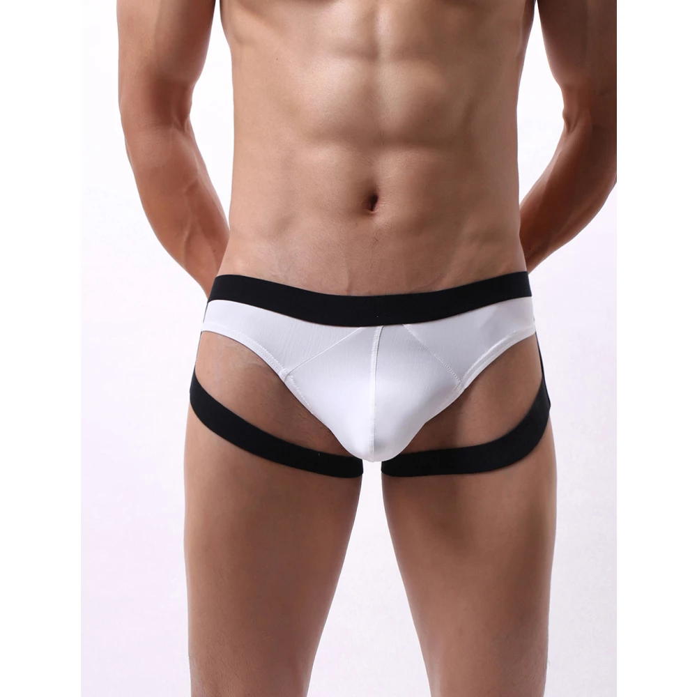 Slip pentru barbati, din material confortabil si elastic, in clasica combinatie de alb si negru. Dispune de un design provocator cu decupaje, care creeaza impresia unui slip cu jartiere fixe pentru coapse.