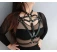 Top cu aspect fetish compus din cureluse inguste din piele sintetica, unite intre ele prin inele metalice. Design fara cupe, dispune de sistem de reglare si prindere la spate pe baza de catarame.