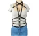 Top cu aspect bondage, realizat din piele sintetica. Model cu multiple cureluse care se unesc intre ele cu ajutorul unor inele metalice. Dispune de sistem de prindere la spate si dupa gat pe baza de catarame, putand astfel ajusta perfect topul pe conturul corpului.