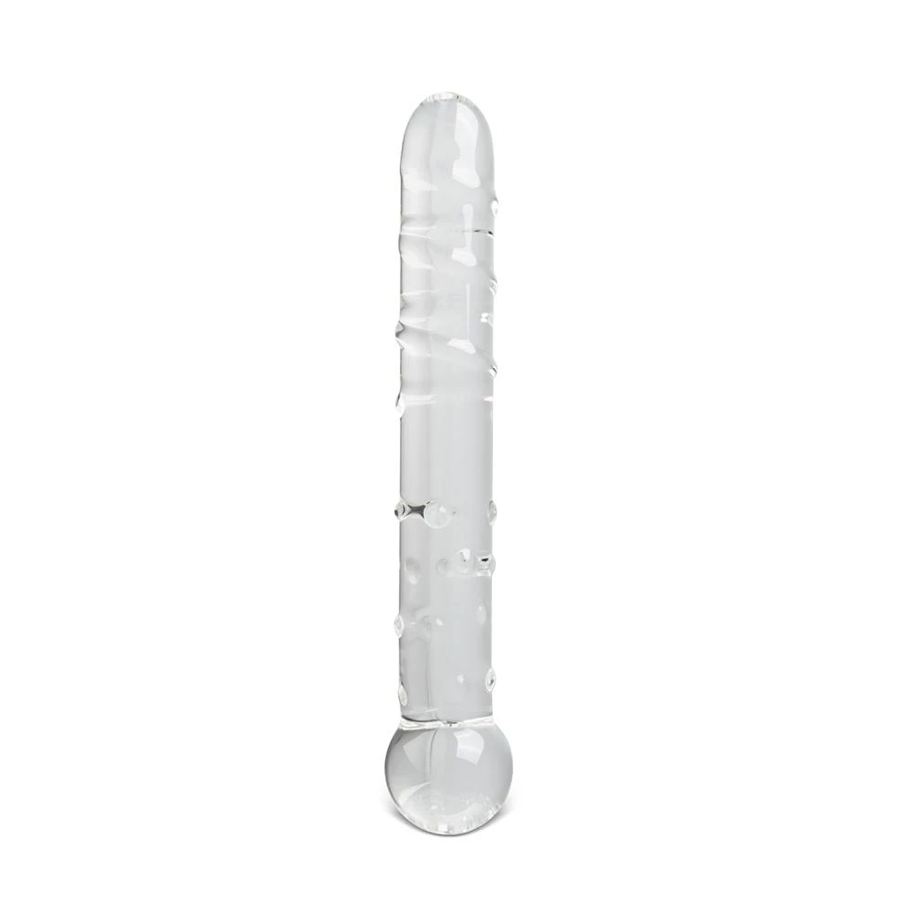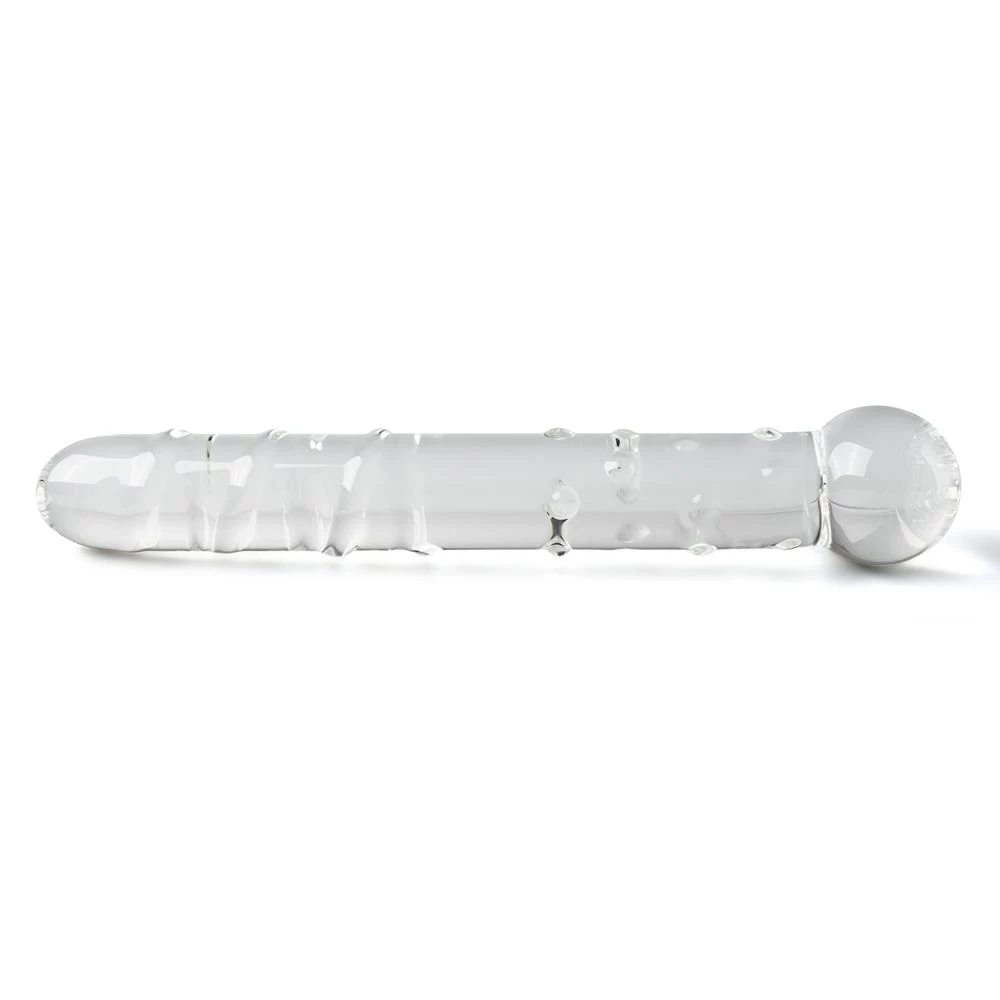 Dildo din sticla ce vine ambalat intr-un saculet de protectie din catifea.
