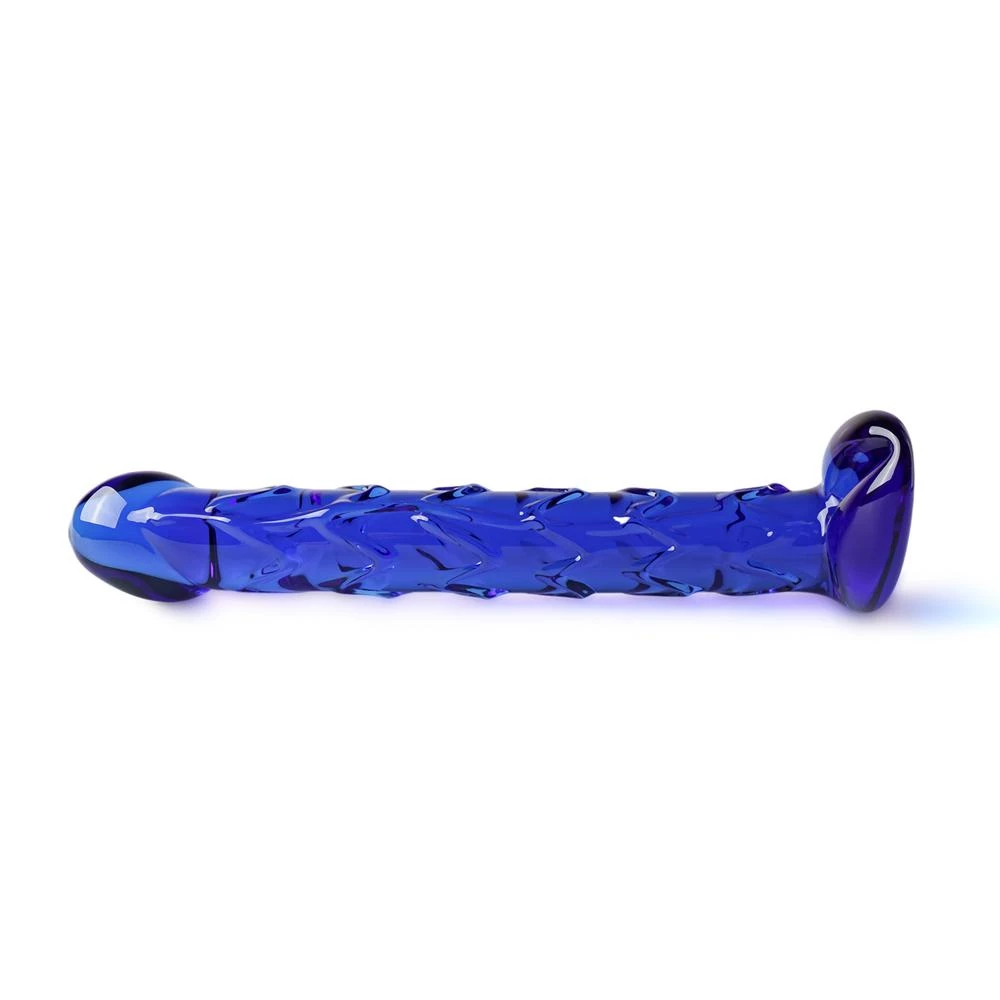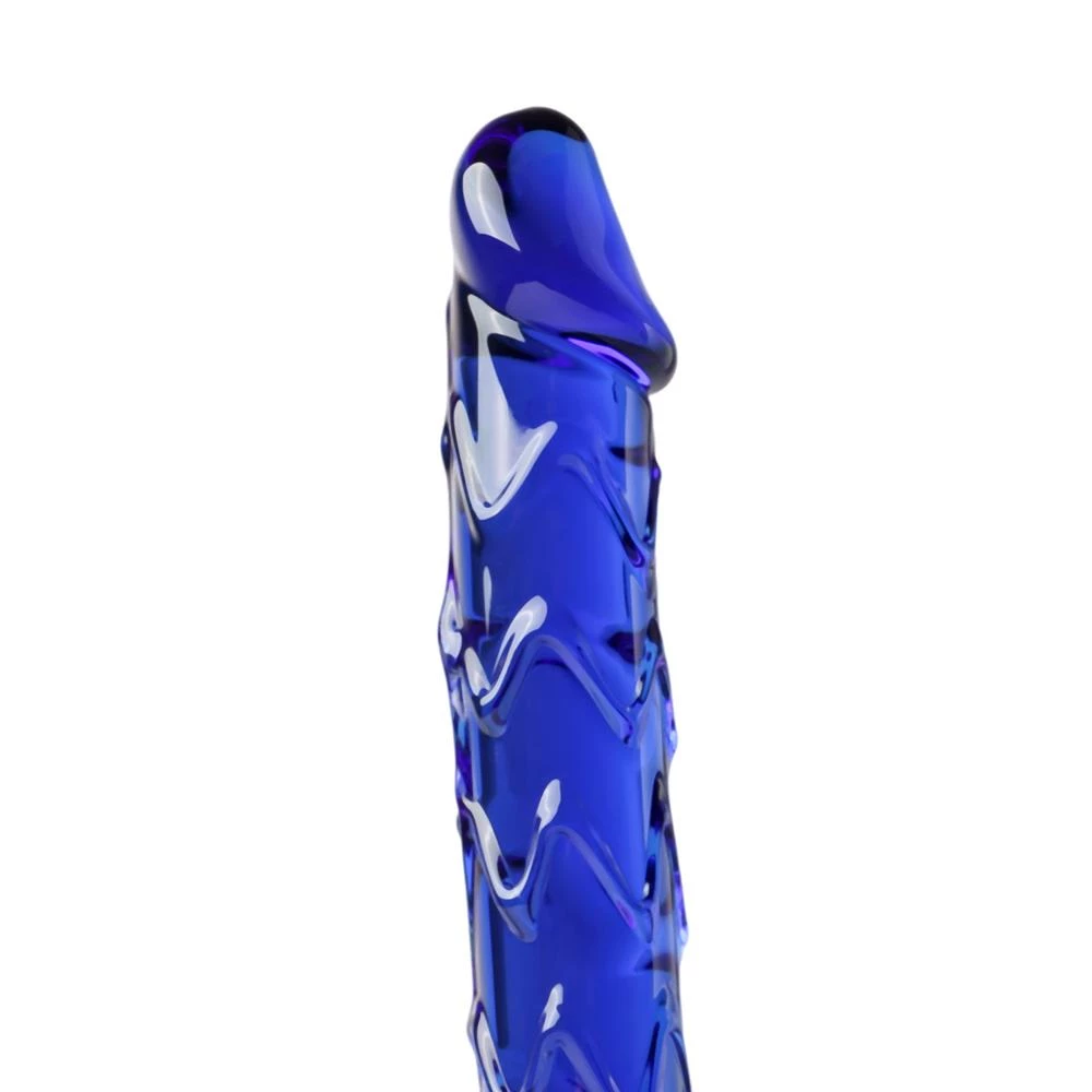 Dildo realizat din sticla cu suprafete iesite in relief pentru o placere mai mare.