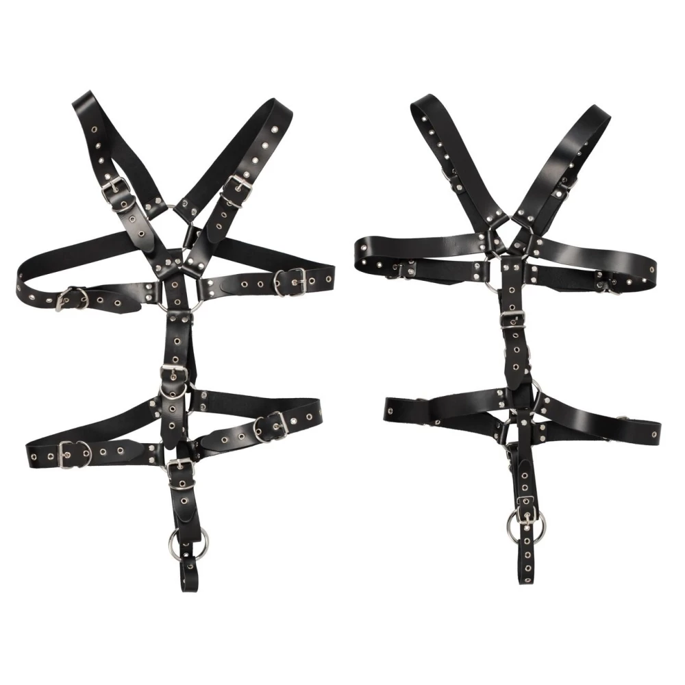 Ham confectionat din piele naturala, compus din cureluse inguste unite intre ele prin inele si capse metalice. Hamul este prevazut frontal cu un inel metalic pentru penis, cu diametrul de 5cm.