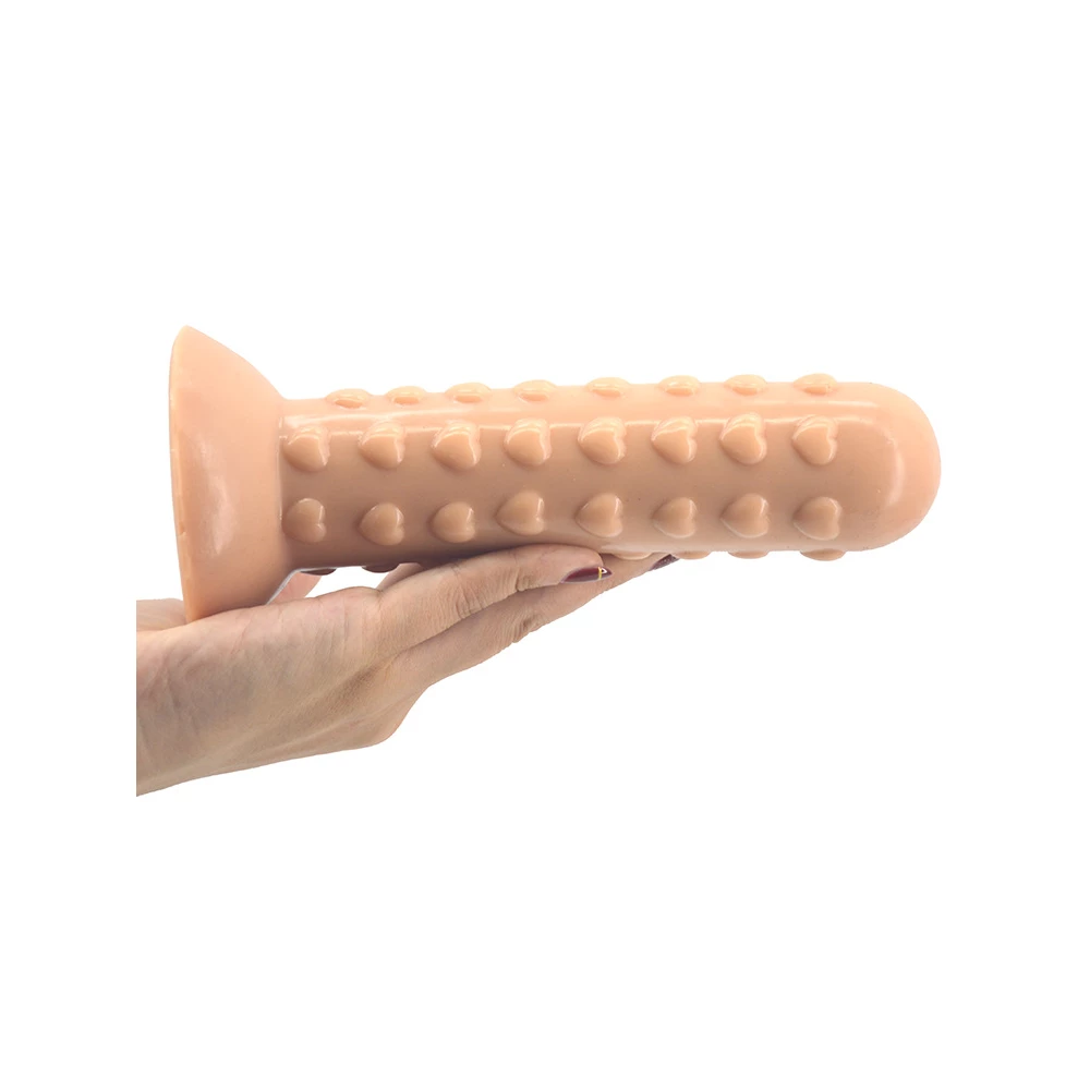 Dildo clasic realizat din silicon cu suprafata neteda si lucioasa si  texturi in relief in forma de inimioare, pentru o stimulare cat mai intensa. Cupa de suctiune puternica de la baza asigura stabilitate pentru o gama variata de jocuri fara ajutorul mainilor.