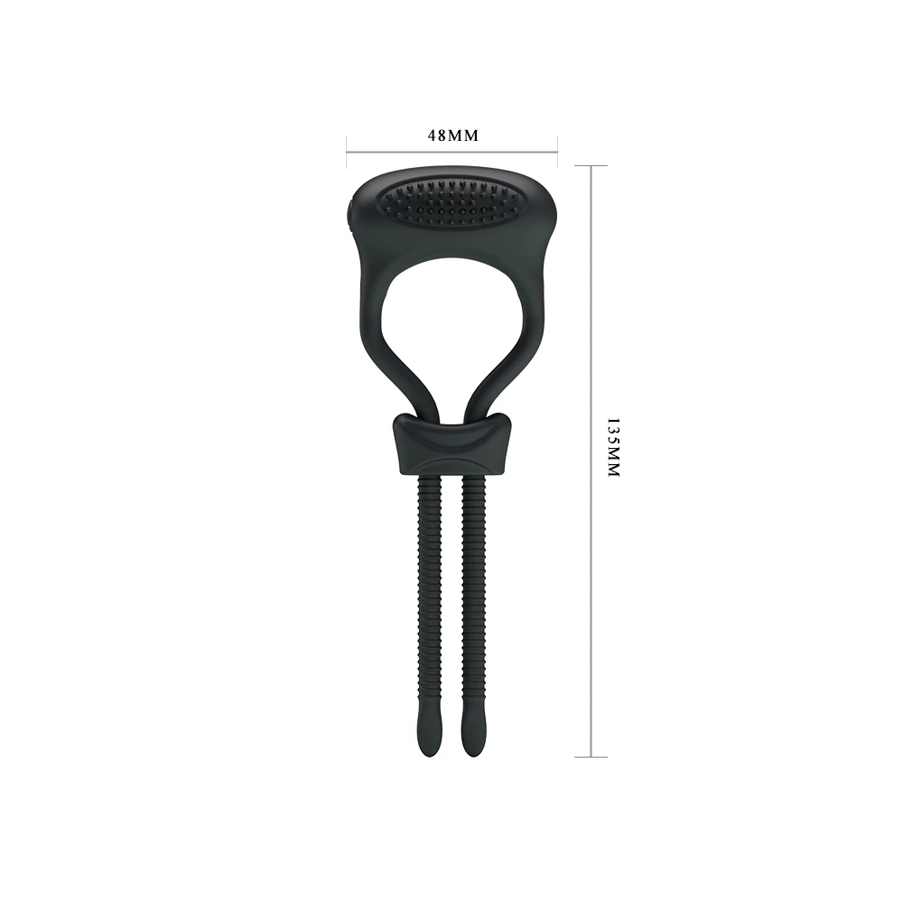 Inel penis de culoare neagra, reglabil, prevazut cu vibratii. Functioneaza pe baza a 3 baterii de tip LR41 care sunt incluse.