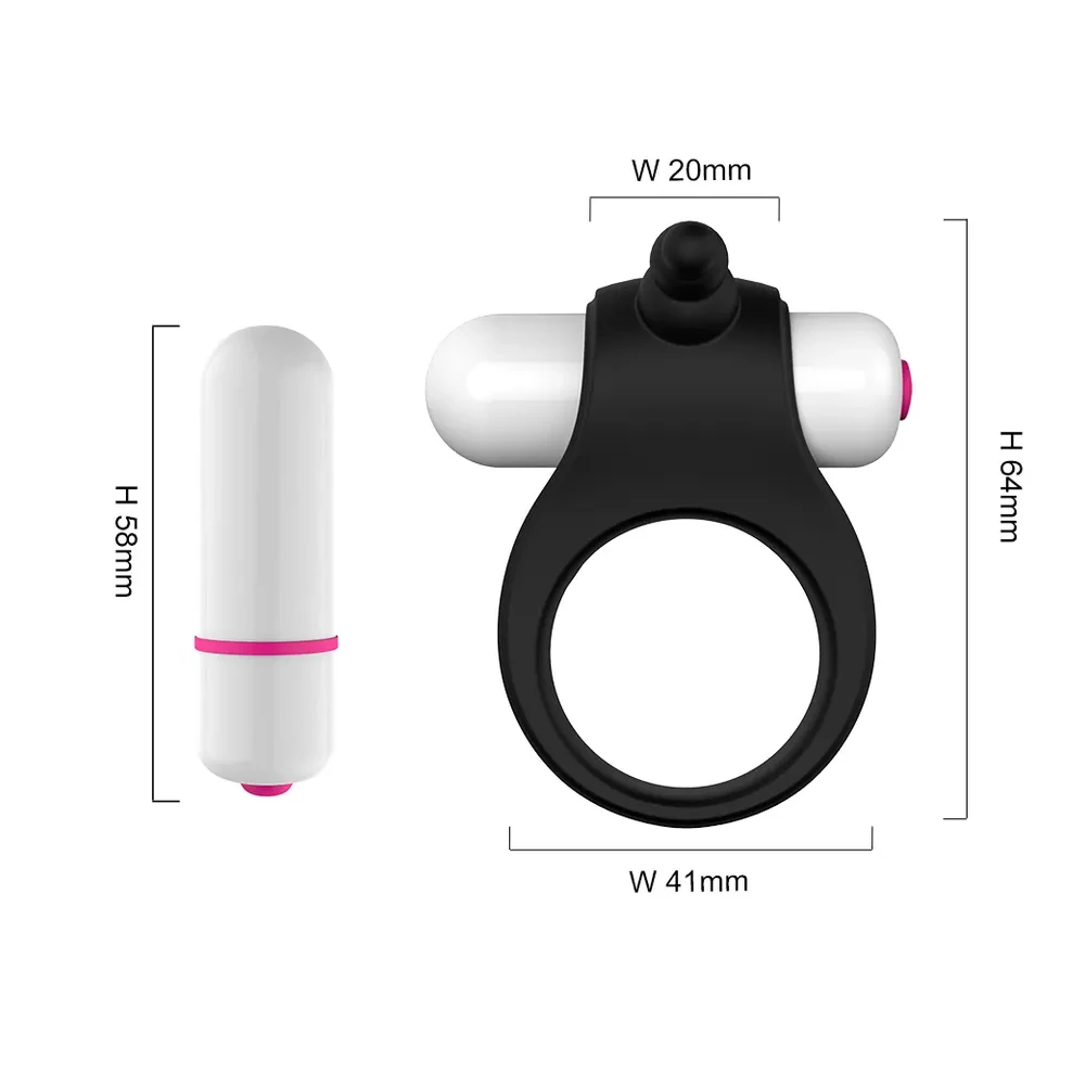 Inel pentru penis prevazut cu stimulator clitoridian si glont vibrator detasabil. Stimulatorul pentru clitoris imita ca forma un sirag de trei bile suprapuse. Glontul vibrator dispune de o singura vibratie si functioneaza pe baza de baterii LR44.