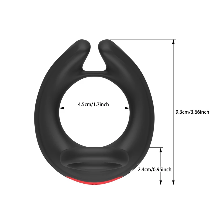 Inel vibrator pentru penis, realizat din silicon de inalta calitate de culoare neagra, fin si neted la atingere. Design-ul este unul foarte atractiv si este prevazut cu o formatiune cu suprafata semi-deschisa, care ajuta la stimularea zonelor erogene ale partenerei. De asemenea, si aceasta formatiune se poate aplica daca se doreste pe penis, iar cealalta stil inel clasic sa fie aplicata pe testicule.